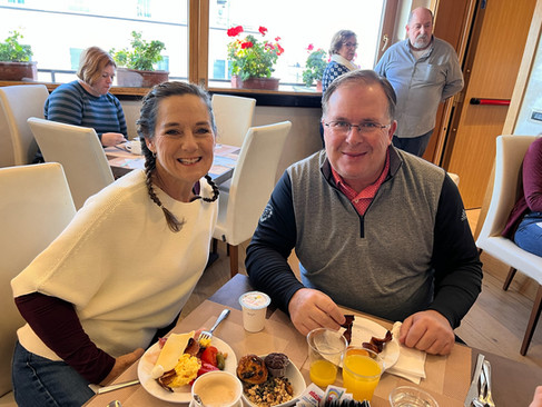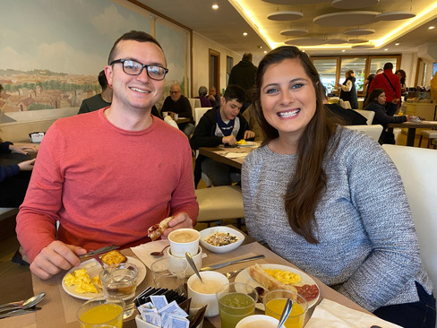 The next morning we enjoyed the hotel's complimentary breakfast on the 7th floor with a beautiful skyline view of Rome and St. Peter's Basilica in the distance.