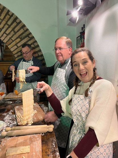 What a great experience to learn how to make pasta and add a few more drinks to our recipe book! Although making our own pasta would be way too much work, Katie and I enjoyed the carbonara so much that we decided we are going to try and recreate it at home! Cindy and Richard even agreed this cooking class was well worth our time! For her lack of cooking desire, Cindy did great too!