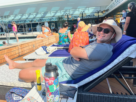 Monday aboard the Oosterdam flew by! I woke up at 7 am and left Bryan sleeping in while I claimed beach chairs on the upper deck. He eventually found me reading and tanning, and this is where we passed the majority of our day at sea.