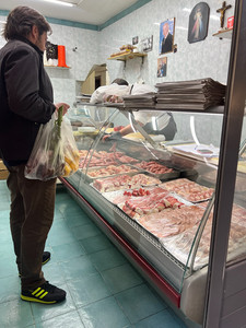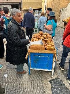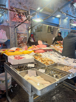 We started our tour in the Capo Market, where we met our guide for the day, Michael, an Irish chef who has lived in Palmero for the last 15 years with his Sicilian wife. Michael gave us a tour of the market while purchasing all the fresh, seasonal produce we needed for our cooking class. We even visited a local butcher shop to purchase the sausage needed for our pasta sauce before making our way to the kitchen!