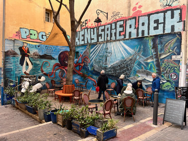 We started our tour by seeing the ancient port; apparently, the foundations for this port were found when the city was digging to build an underground parking structure. As we continued walking around, where I, respectfully, tuned out for most of the tour, we found ourselves in Tag Place des Pistoles, which is the fun art district of the city. Unfortunately, Katie and I did not find a watercolor painting for our collection, but we did enjoy checking out all of the cool graffiti.