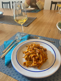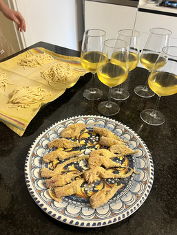 Then it was time for the best part: to eat all our hard work! Alongside Michael, his assistant, and our fellow cooking partner from Germany, we enjoyed the fruits of our labor and devoured our fried artichokes, cauliflower bites, homemade pasta, and dairy dessert!