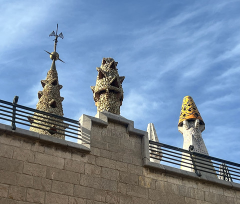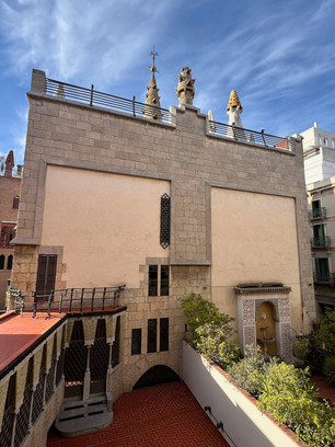 This hostel did have a shocking surprise when I opened the blinds that morning: right next door was another (lesser-known) Gaudi house! After exploring all of Gaudi's works in Barcelona back in December with the entire Kimble gang, I would recognize those mosaic chimneys anywhere. It's crazy how much influence Antoni Gaudí had on Barcelona's architecture. Spotting his work from our hostel was a great sunrise start to our day!