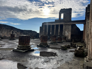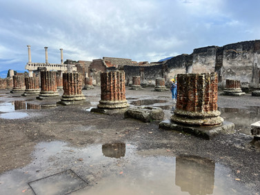 Although these ancient streets were wet, everything seemed very well-preserved, largely due to it being safe from the elements for nearly two millennia! Katie and I were reminded of our summer exploration of Ancient Ephesus' ruins in Türkiye; both ancient cities have been carefully preserved and studied!