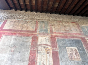 We visited a home that still had many of its wall paintings preserved. Katie and I were amazed at how colorful these paintings still were! I guess when everything is covered in ash, it protects the art from other elements.