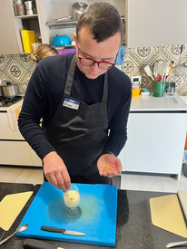 Michael was fantastic! After donning our aprons and washing our hands, Michael guided us through the day's menu! We started our class by prepping biancomangiare, a local dessert made from milk, sugar, and cornstarch then topped with candied orange peel, local pistachios, and cinnamon!