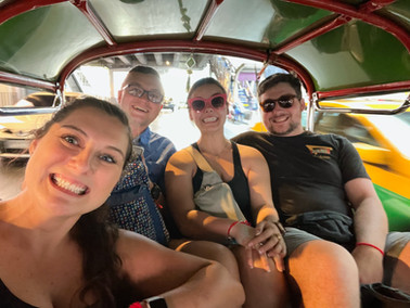 After our skywalk, we headed back to the ground level and grabbed a tuk-tuk back to our AirBnB. This time around, we got a true, Thai tuk-tuk ride that was designed for 2 people. The driver was willing to cram all 4 of us in his metal cart of death, so Katie took the worst seat on the floor and we held on for dear life!