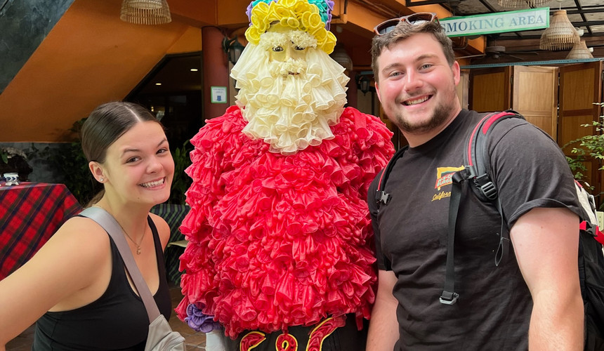 We enjoyed cups of coffee and some traditional Thai breakfast dishes, while also giggling like middle schoolers at the condom table top and the Santa Clause statue made entirely of condoms.