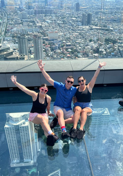 After breakfast, we headed to the King Power Mahankhon building where we would do a skywalk from 78 stories above the streets of Bangkok. When this building was originally built in 2014, it was the tallest building in Thailand, but now it is famous for its 78th-story glass platform that allows you to peer over the city!