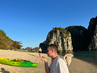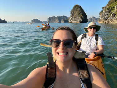 After exploring the massive Thiên Cảnh Sơn cave, we headed to a nearby beach for a few hours of kayaking along the Ha Long Bay islands! Pictures just don't do it justice- this new wonder of nature is breathtaking (and not only because we were getting a good arm workout with the paddles!)