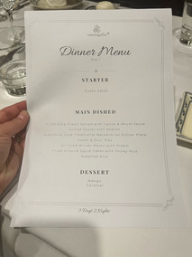 With the sun officially set, it was time to change clothes and head to the dining room for another delicious meal! Pork, fish, chicken, oysters, veggies and prawns: the courses kept coming and we ended the night with full bellies! Our chef even carved some fruit into the Ha Long Bay dragon from the legend we heard earlier!