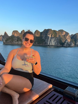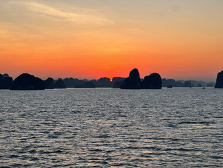 Back on board, we headed straight to the upper deck to enjoy a few cocktails while waiting for the sun to set! And y'all: these photos don't disappoint! Ha Long Bay felt majestic from the kayaks, but nothing could touch the view of the islands as the sun went down. Having a few drinks in hand also didn't hurt!