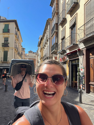 Once we got to Granada, Dad had a stressful time finding the AirBnB parking lot. Then we found it and it was TIGHT. Thankfully our AirBnB host met us at the parking lot and he offered to park the car for Dad...now whether it embarrassed him more to be asked or relieved his nerves about having to park himself, I'm not sure. But what I AM sure of is that I did NOT like that Dad kicked us out of the car and made us stand with Mom while he helped the guy complete the 47-point turn into the tiny lot.