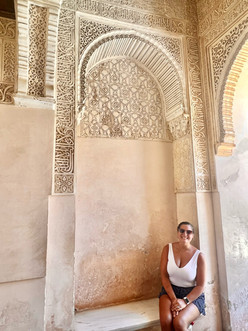 Next up on their day tour at Alhambra was the Nasrid Palaces, where Mom couldn't take enough pictures of the stunning mosaic tilework. From the floors to the walls, the Nasrid Palace was filled with colorful hand-placed tilework that was truly breathtaking (so she says!) The ceilings were also hand carved from wood- one ceiling piece consisted of over 8,000 pieces of wood just to make the star portions of the ceiling design.