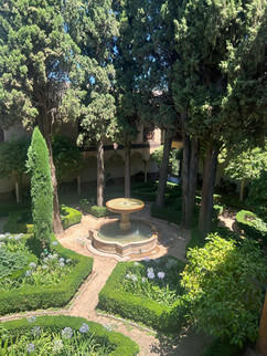 Farther into the Nasrid Palaces was the Patio de los Arrayanes (Court of the Myrtles), where Mom and Dad saw a stunning reflection pool surrounded by Myrtle bushes. The deep green bushes beside the stark white pillars of the palace complemented each other and provided a beautiful view.