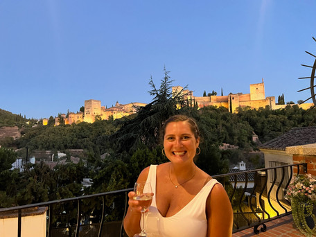 ANYWAY, they went to Restaurante Carmen El Agua, where they enjoyed a delicious dinner with a stunning backdrop! The samosas were killer, Dad loved his dessert cake, Mom's rack of lamb was BOMB and Dad's Japanese-inspired steak was a cool experience but not as tasty... but he agreed he would 100% eat it again if it meant he could enjoy a meal with this view of Alhambra.