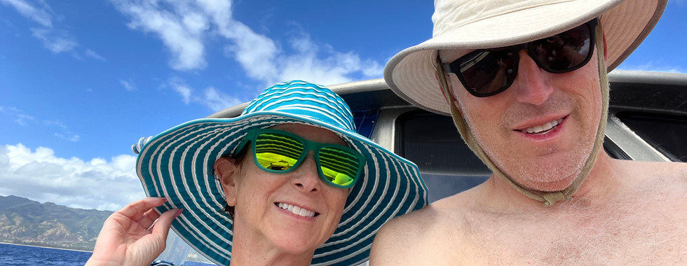 Thursday, May 12 began at 6:30 am, with us sleepwalking to the van and taking off for the North Shore! Bryan and I knew that we didn't want to miss a day with our family by scheduling a dive trip, so instead, we talked everyone into joining us on another bucket list item: swimming with sharks! We made it to the port around 8 am, where we met our boat captain and headed 3 miles off the coast of the North Shore to swim with Galapagos Sharks!