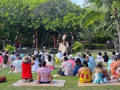 We tried and failed to get seats for this presentation in the shade, so we just sat and enjoyed the show while our skin sizzled in the Hawaiian heat.