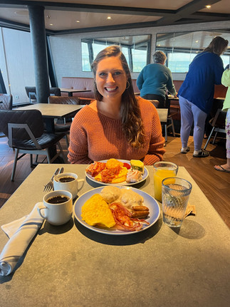 After an eventful morning, we were ready to indulge in our all-inclusive meal plan with brunch aboard Norwegian's newest ship: Prima! Fresh salads, soups, pastas, and Philly Cheese Steaks filled our plates as we dined in Hudsons, the main dining room.