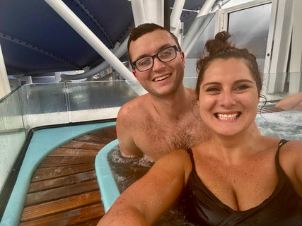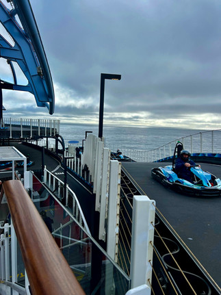 After experiencing Iceland, it was time to hit the Norwegian Sea to continue our journey! We spent this day eating, drinking, playing mini golf, and watching racers zip around the 18th-deck racetrack. Yep, Norwegian Prima is the first (and currently only) ship with a go-cart track on board. I tried to talk Bryan into giving it a go, but he didn't want to spend the $15. I just wanted him to race so I could use the laser guns above to shoot at him as he flew by!