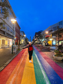 Feeling all relaxed and toasty, we weren't quite ready for this birthday to end, so we drove back downtown to do some night shopping and exploring. Of course, I had to snap a few more pictures of Hallgrimskirkja with the famous Rainbow Street Art! I also enjoyed all the other less-known street art around town! Despite the price tag, Reykjavik was a stunningly beautiful town and full of adventure for us!