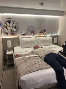 Eventually, our room was ready and Bryan was happy to see our suitcase and backpacks made it safely to our 10-day home! The rest of the day was spent exploring other areas of the ship, playing in game shows, winning the first round of trivia onboard (go Bryan! I was just there for emotional support), and finding all the Romero Britto art for Cindy Kimble!