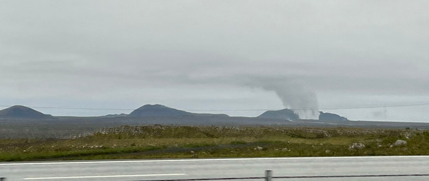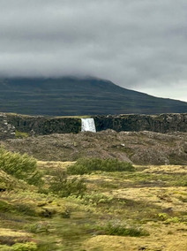 With something on our tummies, we were off for our road trip day adventure! As we left the southeastern coast, we headed inland towards Þingvellir National Park. While the weather was overcast and quite gloomy, seeing Iceland's scenic landscapes was quite beautiful. Zero trees, lots of mossy ground covering, and volcanos in the distance.