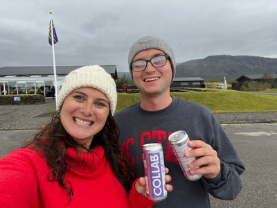 As we made our way back to the car, we saw Öxarárfoss waterfall from a distance and paused to enjoy the beautiful scenery of Þingvellir National Park one last time. As we left the park, we stopped at the tourist center for a pin and to try a local Collab caffeinated collagen drink. (Hey, we needed caffeine and this was an all-natural Icelandic soda-water thing, so we had to try it!)