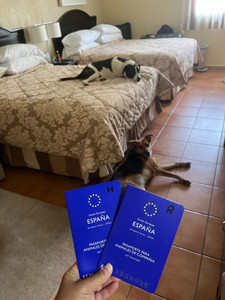 The best part of this visit was confirming Reynolds wouldn't have to be placed on the Spanish PPP list. Spain has a law requiring any "dangerous breeds" owners to have special dog insurance. This process requires a physical and mental health screening for owners, hefty insurance fees, and requires the dog to always wear a muzzle when walking off their property.