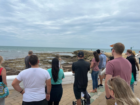 Our final stop of the tour was to lunch at Cervecería Restaurante La Pérgola in downtown Rota! We were served a variety of tapas and a choice between the house fish or chicken. I went with the chicken and enjoyed every bite! Rosa explained that Spanish food isn't seasoned as much as Americans are used to, which I noticed it lacked the level of salt I'm used to, but the flavor was there! It was also a great opportunity to visit with others in the ICR class while we enjoyed our hour-long lunch!