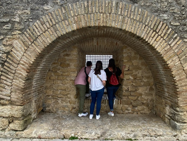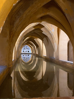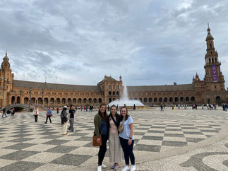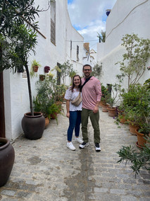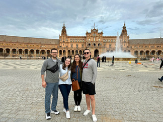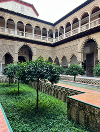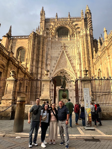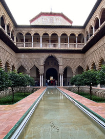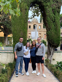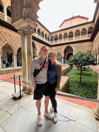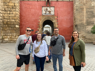 We started with tickets to visit the Royal Alcazar of Sevilla. This citadel was built in the 10th century by the Moors during their occupation of Spain and is decorated with beautifully patterned tiles and Islamic archways! Bryan and I were reminded of the larger Alhambra in Granada, Spain with the Alcazar's design and layout. Our group enjoyed taking pictures of all the open spaces and stunning architecture!