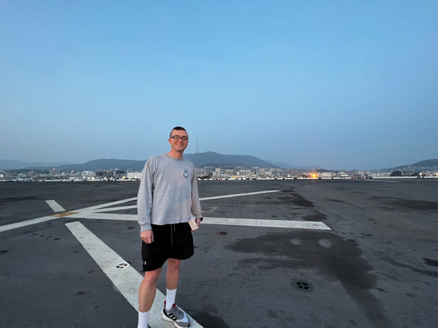 We then headed up to the flight deck, right at sunset, so the views were great! I don't think I really need to explain the purpose of the flight deck, but it's nearly three football fields long and a great place to run when flight ops aren't taking place. (Reference, the flight deck is on the 03-level, just one floor above my room.)