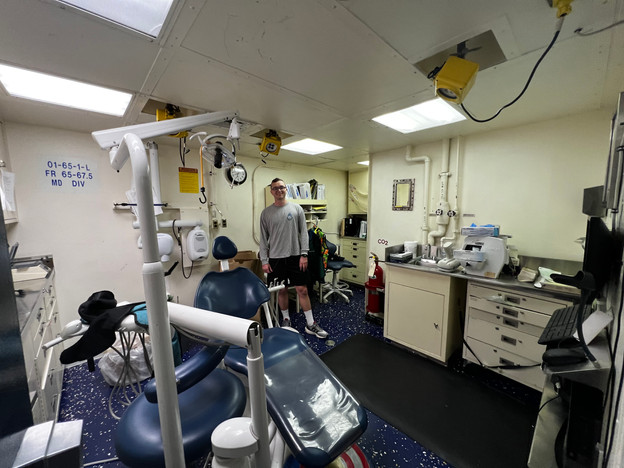 As a dental officer, I also serve as the ship's Triage Officer, so anytime the ship receives a casualty, I'm the one on the flight deck receiving the casualty and then directing traffic on where the patients should go. Good thing I took TCCC (Tactical Combat Casualty Care) before getting here! Medical also has a pharmacy, an OR, an ICU/ward, and an X-Ray room. While we are underway, the Medical Department is augmented by the Fleet Surgical Team (FST-7) which includes a surgeon, a CRNA, an ICU nurse, and a few other doctors. Man, I wish we could get some more hands over in the Dental Department.