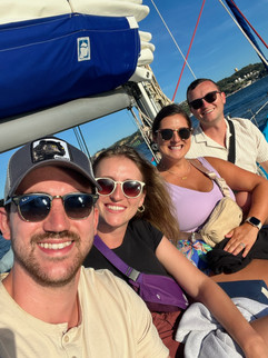 As we sailed under the bridge, our skipper and beverage-mate shared local history and kept our glasses full! As the sun began to set, Sabrina and Katie donned sweatshirts, while we all huddled under the provided blankets.