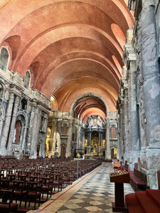 Adjacent to A Ginjinha is the Church of Saint Dominic, which was originally established in 1241, but has since been destroyed and rebuilt numerous times (i.e. the earthquakes of 1531 and 1755). Most recently, a fire broke out in 1959 destroying most of the interior, but when it was reopened in 1994, the interior design left many signs of the fire in place.