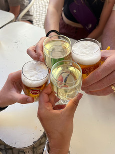 While Sabrina and Caleb did some packing and took showers before dinner, Katie and I explored the Spring Festival stalls a little bit more. After walking by and smelling all of the sandwiches, I couldn't resist, so Katie and I enjoyed a small ham and cheese sandwich and a glass of green wine each.