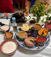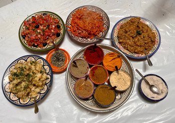 After a quick shopping trip in the souks for fresh vegetables, it was time to get to cooking! We donned our aprons and began dicing up vegetables and adding numerous colorful spices to every dish! For our starters, we enjoyed a Moroccan salad, eggplant zaalouk, potato salad, and a caramelized carrot dish. Our main courses consisted of vegetable tagine and lemon chicken tagine, which was made with salted, pickled lemon! For dessert, we enjoyed yogurt with apple and filo pastry!