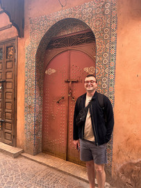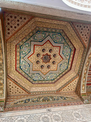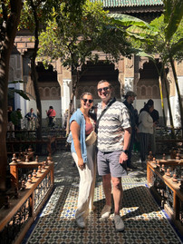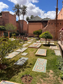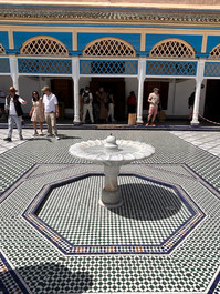 Our first stop of the tour was the Bahia Palace. The palace began as a home for the grand vizier and was expanded to become a stunning example of Moroccan architecture and design. Katie and I marveled at its stunning tile work, colorful, ornate ceilings, and beautiful archways! Our tour guide told us that the design for this palace was inspired by the Alhambra in Granada, Spain, which Katie and I had the chance to visit in August 2023.