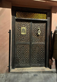 After wolfing down the pre-packaged pastries and chugging our bottled waters, we left the riad and headed to our meet-up point at Jemaa el-Fnaa, Marrakech's old city square! The bustling souks (markets) from yesterday evening were now quiet makinghis morning's walk much less overwhleming!