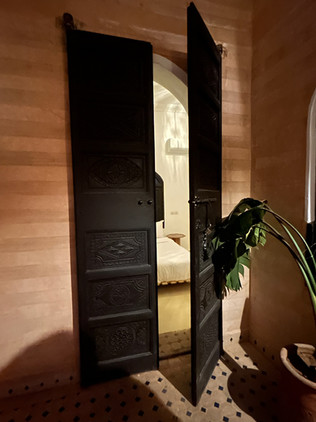 After some earlier research, I knew I didn't want to deal with the haggling taxi drivers right outside the Marrakesh Menara Airport, so I opted for the hotel pickup service. Upon exiting the airport, we met our driver holding a "Riad Black Doors" sign and began our journey to Marrakesh's Old Town.