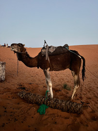 With the help of our guide's translation, I learned that these camels give a sunrise and a sunset ride every day. Between these journeys and overnight, they spend their time roaming freely in a giant field close to the dunes. It's easy to say, they are happy camels!