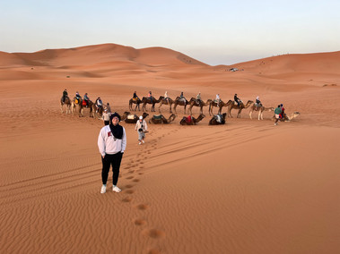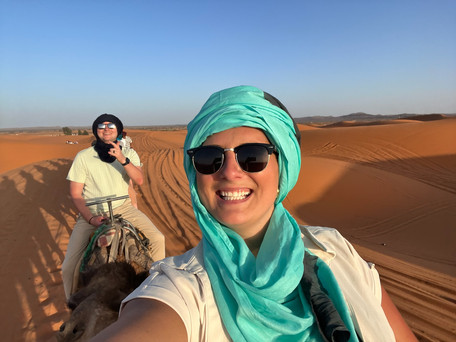 Surrounded by dunes and seeing nothing but sand along the horizon, we made it to our desert camp for the evening! That's right, I wasn't just going to visit the Sahara Desert- we were going to stay the night here!
