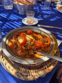 After an hour and a half nap, we arrived in the historic town of Ait Benhaddou for lunch and a walking tour! For lunch, Katie and I shared a soup, salad, and a chicken skewer plate & meatball tagine, a traditional Northern African dish cooked in a clay pot bearing the same name.