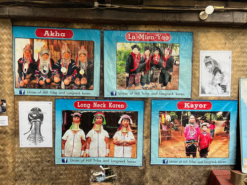 As we drove, John taught us about the Longneck Karen Village we would be visiting next. Years back, China attacked Tibet and the local tribes fled to Burma. These local Tibet tribes sought refuge in Burma until the country, now called Myanmar, faced its own civil war. These hill tribes fled to northern Thailand, where they have been granted asylum and given their own land to preserve their culture and traditions. The most famous of these hill tribes is the Karen Tribe; they are famous for the golden rings that grace their necks. Tradition has it that the more rings around a woman's neck, the more beautiful she is.