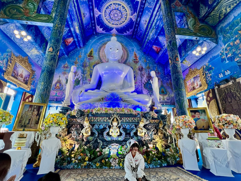 Next stop: the Blue Temple. This temple was named, similarly to the earlier White Temple, for its monochromatic exterior, and is still under construction, but the gorgeous interior carpet, wall paintings and ceiling designs were breathtaking! The local community has funded the continual construction of this temple, so while it is taking many years to complete, the work has been done with so much heart and passion!