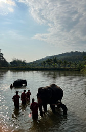 Before heading back across the river to our beginning meeting point, we met the eighth elephant- a 50-year-old female who was rescued from a tourist riding camp, where she was abused and suffered a broken foot. Similar to the first elephants' story, this lady was forced to work on her mangled leg until she could no longer balance, and began to use her trunk for a crutch.