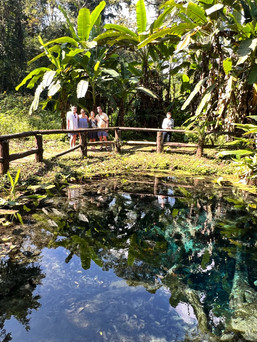 After enjoying our vertical climb, Andy took us to the waterfall's water source- a local hot spring that works as a "natural pump" to monitor the correct flow down the sticky waterfall!