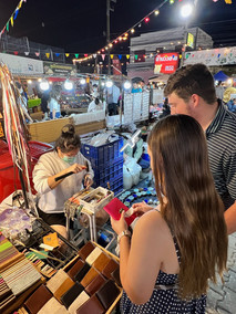 At one of the last booths on the street, Cady and Ryan stumbled upon the passport covers they so badly wanted back in Bangkok! This time, the personalization was instant, so the two of them picked out leather covers and charms and waited patiently as the lady put together their passport covers!