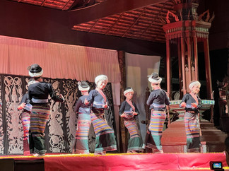 We arrived at the Old Chiang Mai Cultural Center for our dinner show and were led to our seats right in the front! We were then served a traditional Northern Thai dinner. Our meal was family-styled and is referred to as a khantoke meal, because of the special round table that the food was served on. Following our meal of chicken, pork, rice, fermented veggies and Thai curry, we sat back on our pillowed floor seats and watched local performances from 5 different hill tribes of Northern Thailand. These performances included the Thai Fingernail Dance, the Thai Sword, the Thai Candle Dance, and the Thai Folk Dance (Ramwong.)