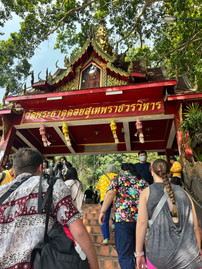 Bryan booked us a Grab and we headed off to another Thai temple, this time way up in the mountains of Chiang Mai! Wat Phra That Doi Suthep Ratchaworawihan may be a mouthful (and don't ask us how to properly pronounce it) but it was definitely a golden sight!